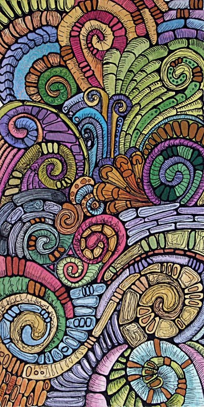 Finished earlier this week. 18cm x 9cm approx. Pen and ink, watercolours and iridescent paints on watercolour paper.