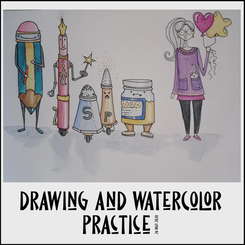 After that, I had some tasks around the house to do, and had phone calls that disrupted my flow of work somewhat. In the evening, though, I decided to continue with the Mattias Adophsson Domestika course, and the drawing/painting above was the result.