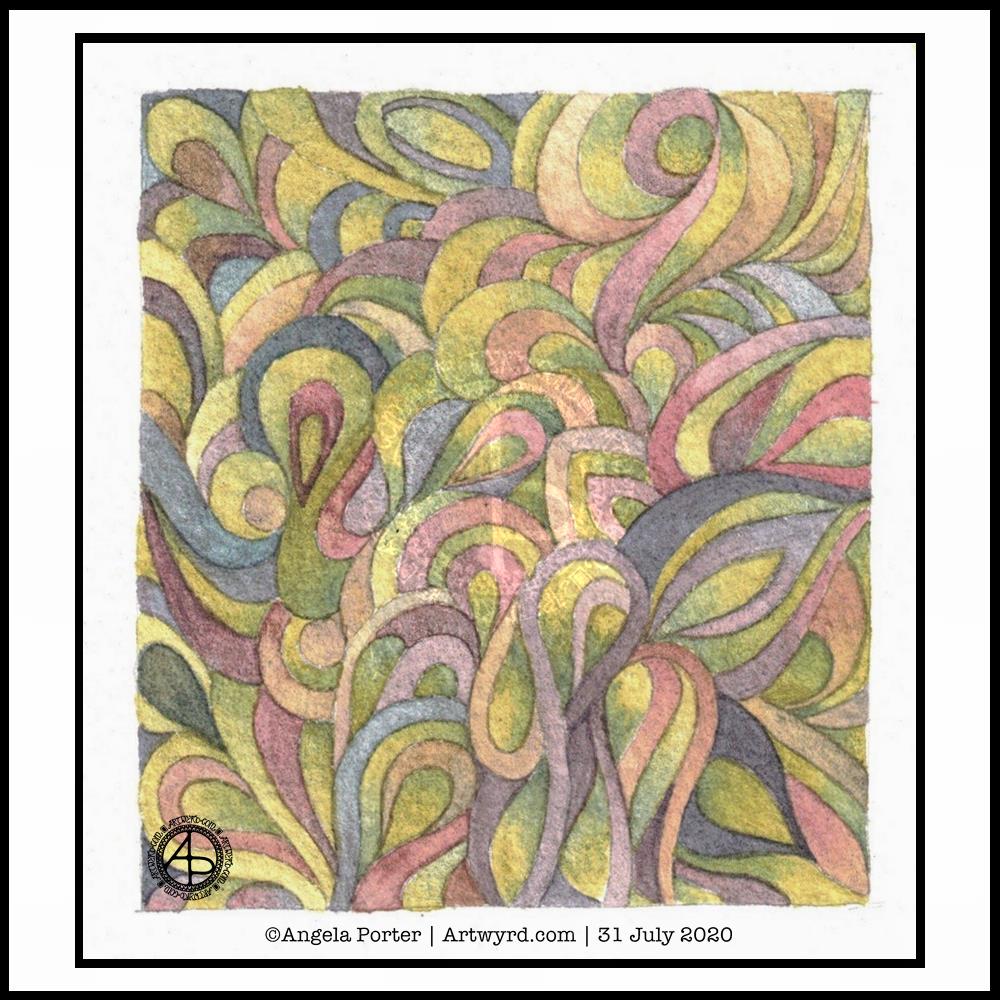 A good three or four hours have been enjoyably spent on creating this little abstract watercolour painting.