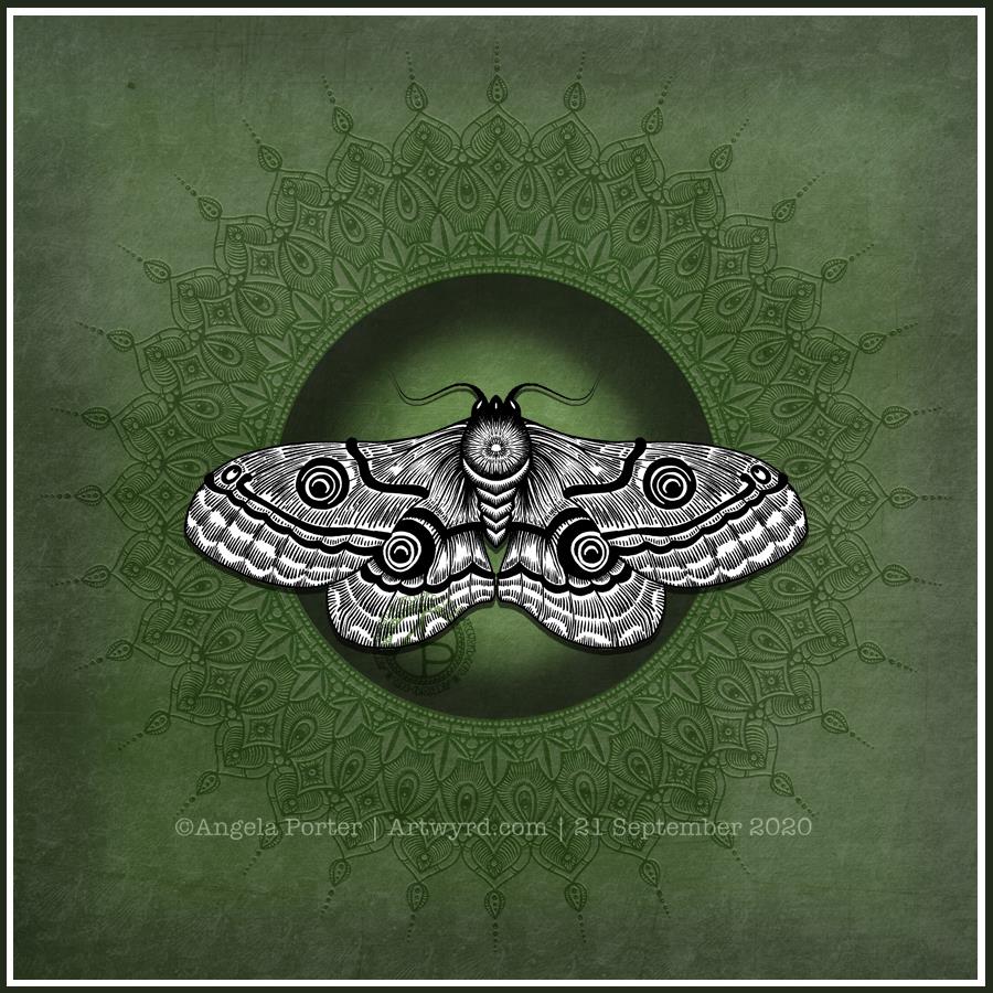 I also have drawn a new mandala-style pattern for the background. This time, I’ve added it as a subtle design. I think it works quite well as the moth really stands out.
