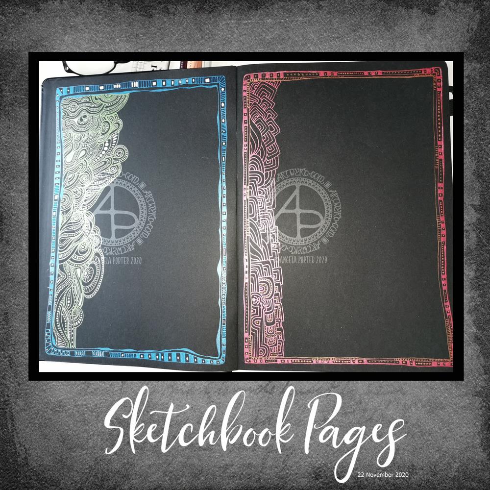 I haven’t decided what to do with these pages yet. Will I fill them in completely with colour/pattern, or will I leave the pages as they are. If I leave them as they are then they can be used for journaling, writing, and I quite like that idea to be honest. As the writing is likely to be very personal, I’m not likely to share that, but maybe I’ll mock something up digitally, see for myself what it’s like and then decide.