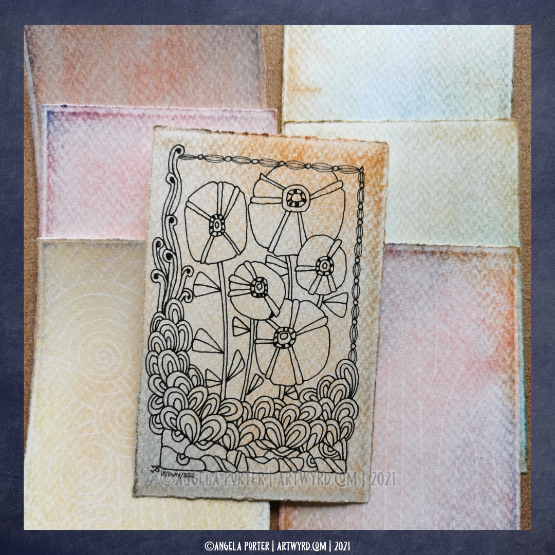 This morning, I created some backgrounds to draw on. All the paper as Fabriano Medioevalis (3.3″ x 5.5″).