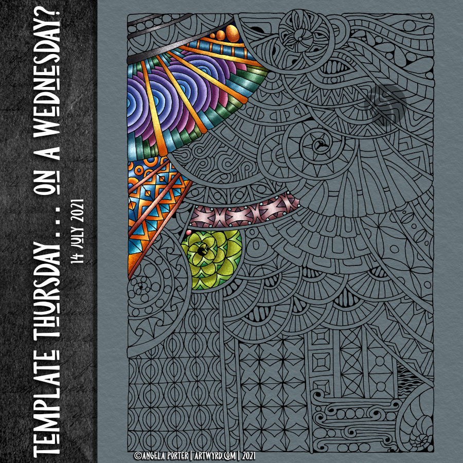 This morning, I drew this week’s coloring template / coloring page. The template itself will be available in the Angela Porter’s Coloring Book Fans facebook group tomorrow.