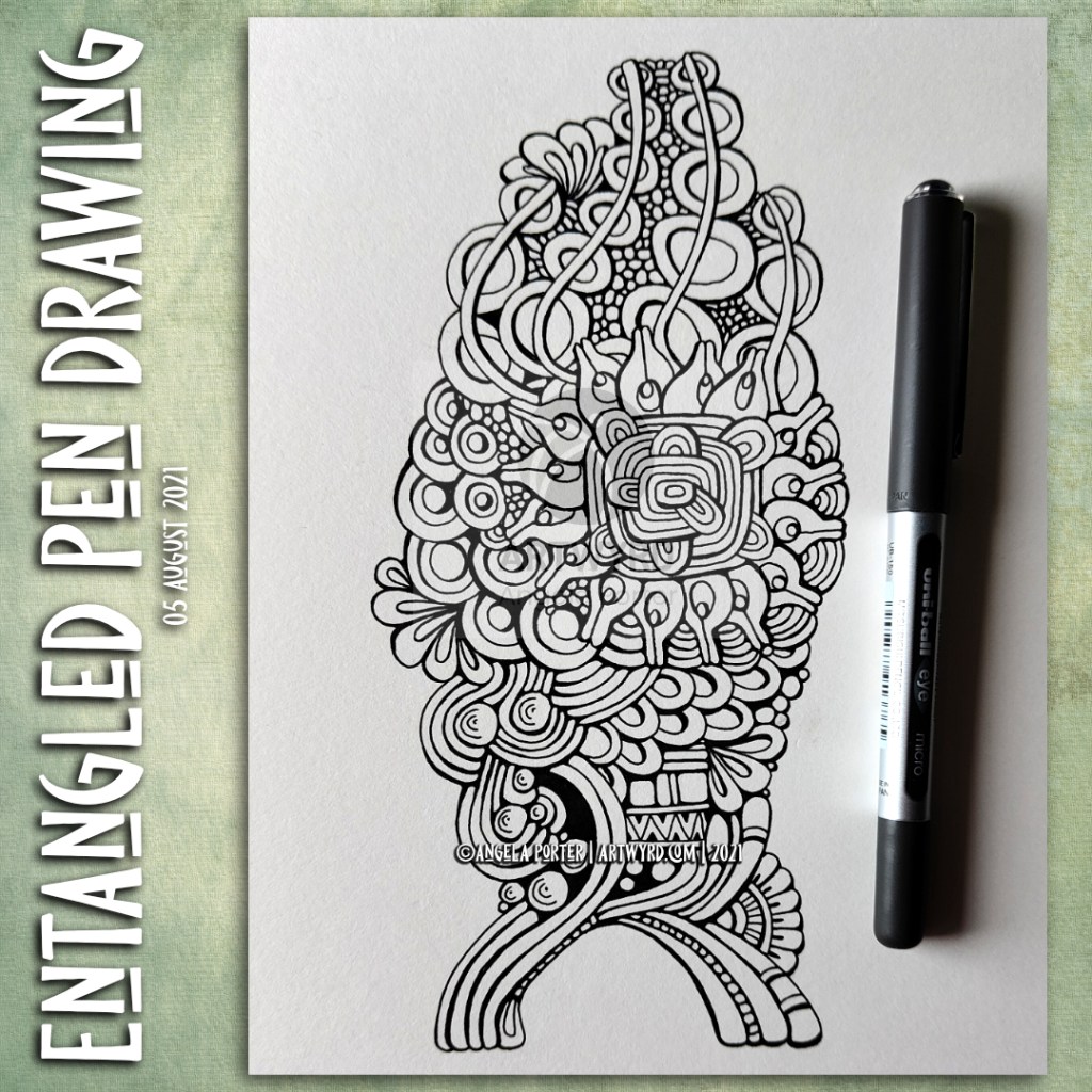 Days like these are not days to be challenging myself artistically or otherwise. Times like these are when the inner critic starts to bare it’s fangs at me. I’ve found that doing familiar, comforting art is the best way to disempower that inner critic. I know I do good enough art when it’s an entangled pen drawing, and that means that I don’t doubt myself or beat myself up – all of which are just food for the critical monster.