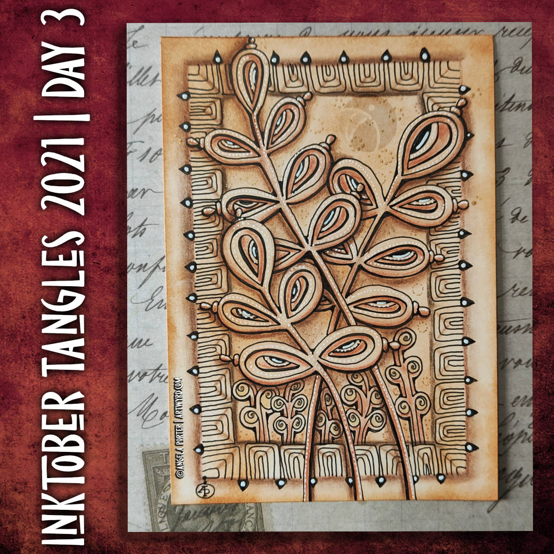 I’ve used Lunar Flux in a similar way to my tile for Day 1. I just think it’s lovely as sprigs of foliage. Dewd works well as a filler pattern behind Lunar Flux. Finally, I used Naaki in the square to create a border.
