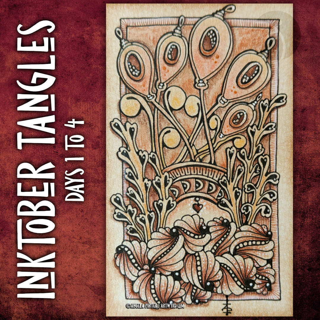 I’ve done a quick vlog showing my sketchbook pages for the first four days of Inktober Tangles 2021. You can view it here.