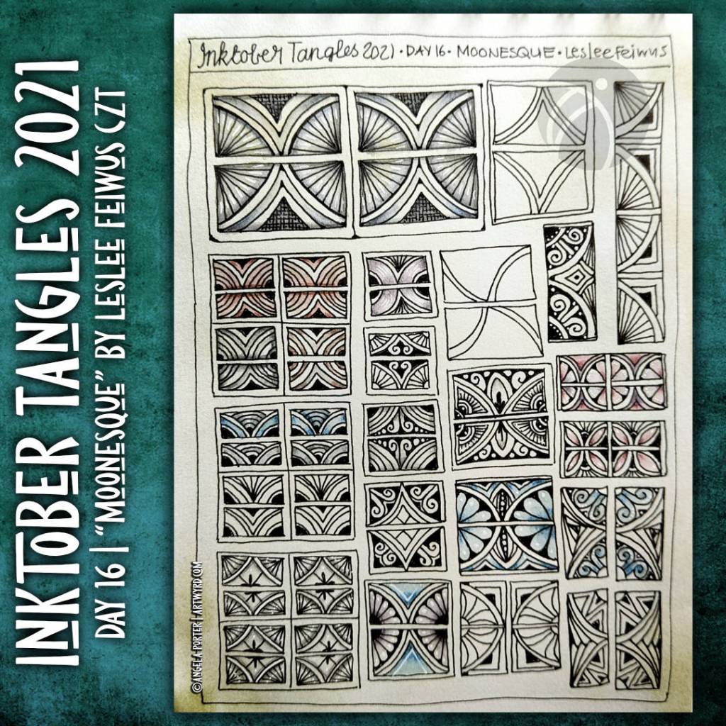 Today’s tangle pattern is the lovely grid based tangle ‘Moonesque’ by Leslee Feiwus CZT.