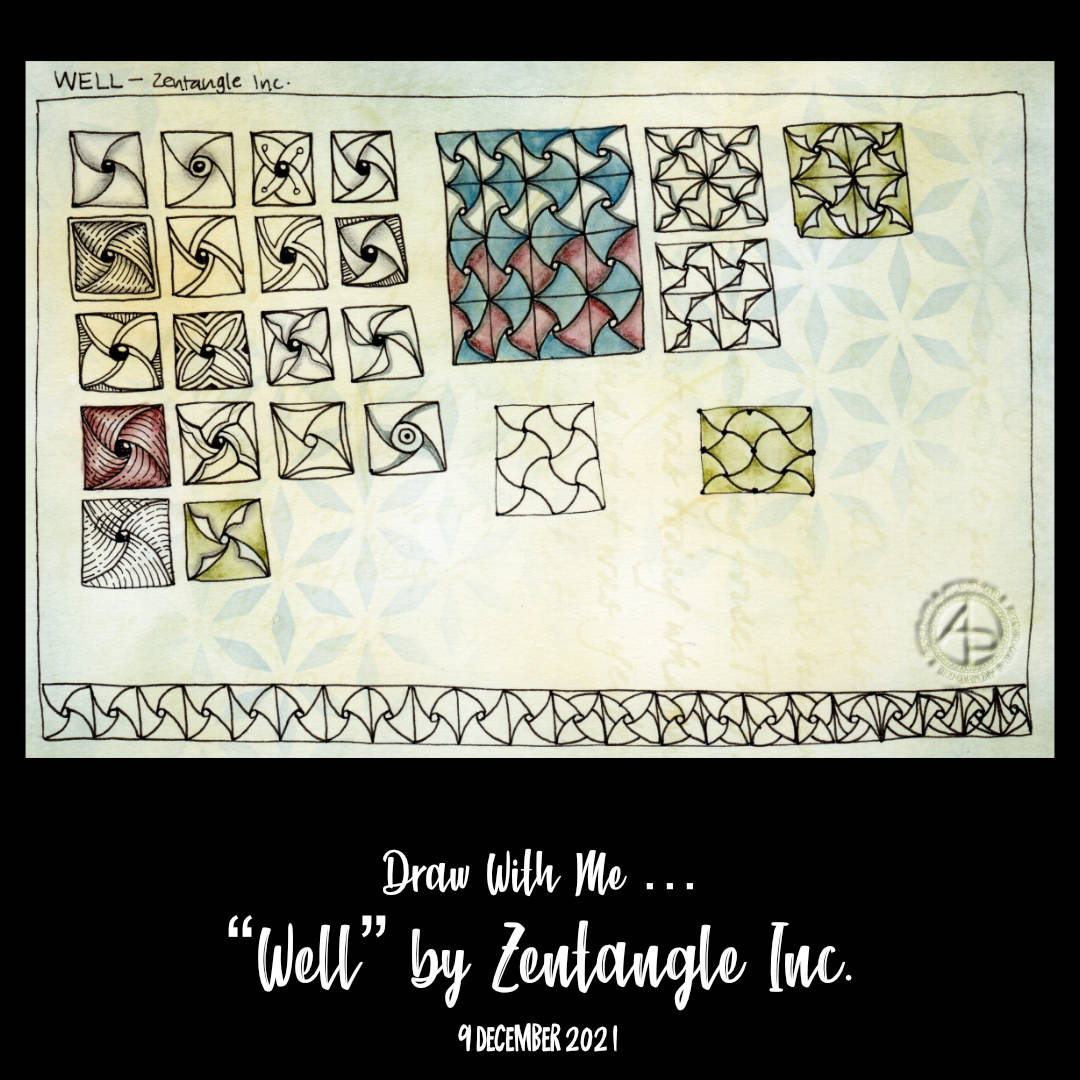 I started my arty day by drawing variations of the pattern “Well” deconstructed by Zentangle Inc.. I filmed it for today’s vlog, and you can see it by following this link.