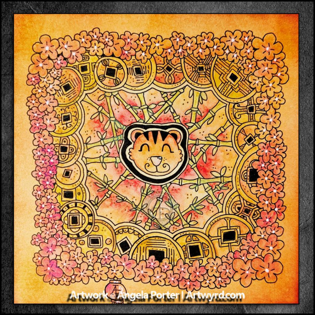 I then realised I hadn’t put a tiger anywhere! So, I popped a cute and whimsical tiger head at the centre, all smiling and happy.