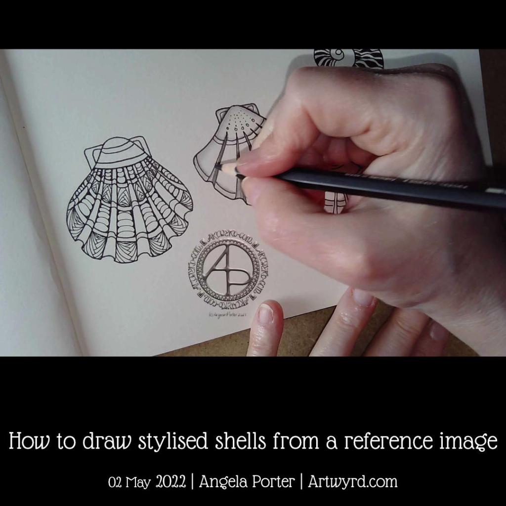 In today’s YouTube video tutorial, I do my best to describe and show how I draw a stylised seashell or two from reference photos.
