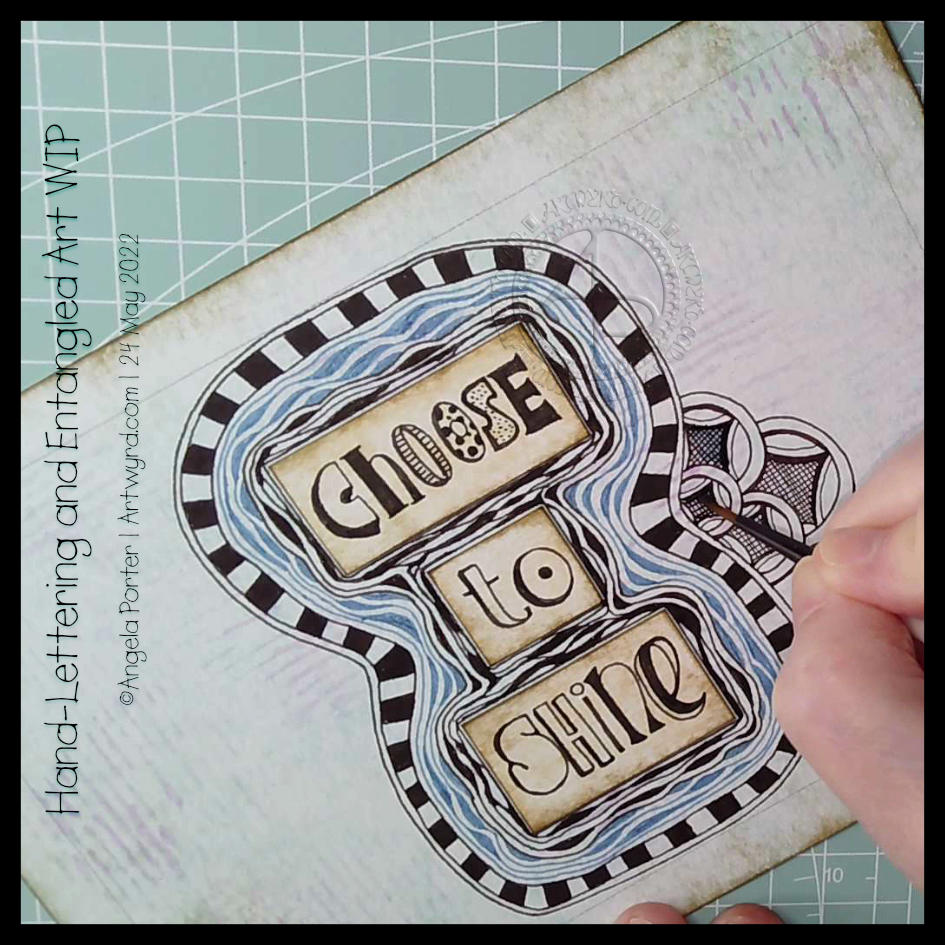 But, I’ve ended up with a birdseye view of an “I” shaped moat around a blocky castle “rolls eyes”. Having “choose to shine” inside a capital I works rather well – I choose to shine. But what possessed me to use blue Diva Dance around the letters? I really didn’t think it through or see the consequences of that choice. Duh!