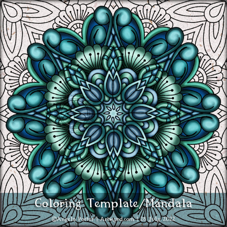 I enjoy the calming, meditative process of mandala drawing. And as I didn’t want to disturb that calm space I found myself in by making a right mess of adding some colour, I decided to go with an analogous colour scheme. Soft blue, teal and green are also very calming colours.