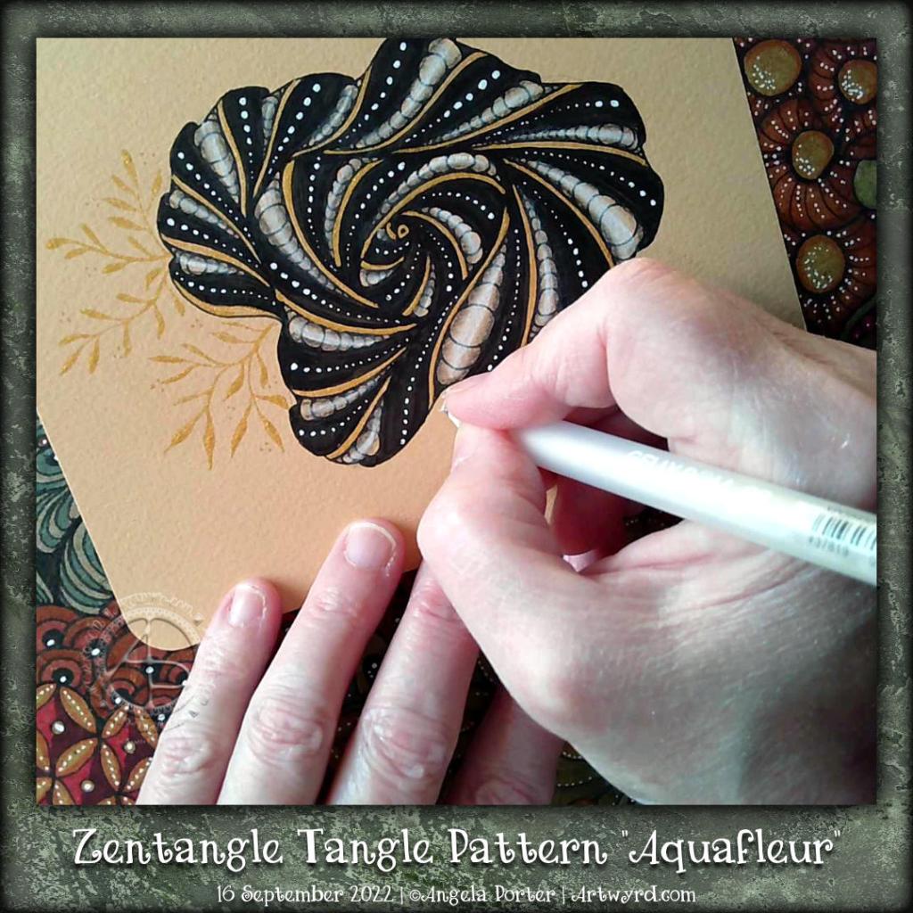 Like most tangle patterns, Aquafleur is quite easy to construct once you’ve made sense of the pattern’s step out (deconstruction).