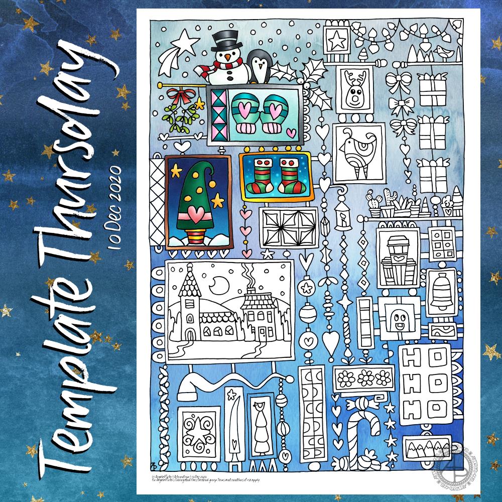 This week’s template is a combination of dangle designs and little pictures. Not one large and often intricate image to colour this week, but a series of little ones so that the template can be coloured in one little bit at a time. This is great for people who get overwhelmed by large, overly-complex colouring pages.