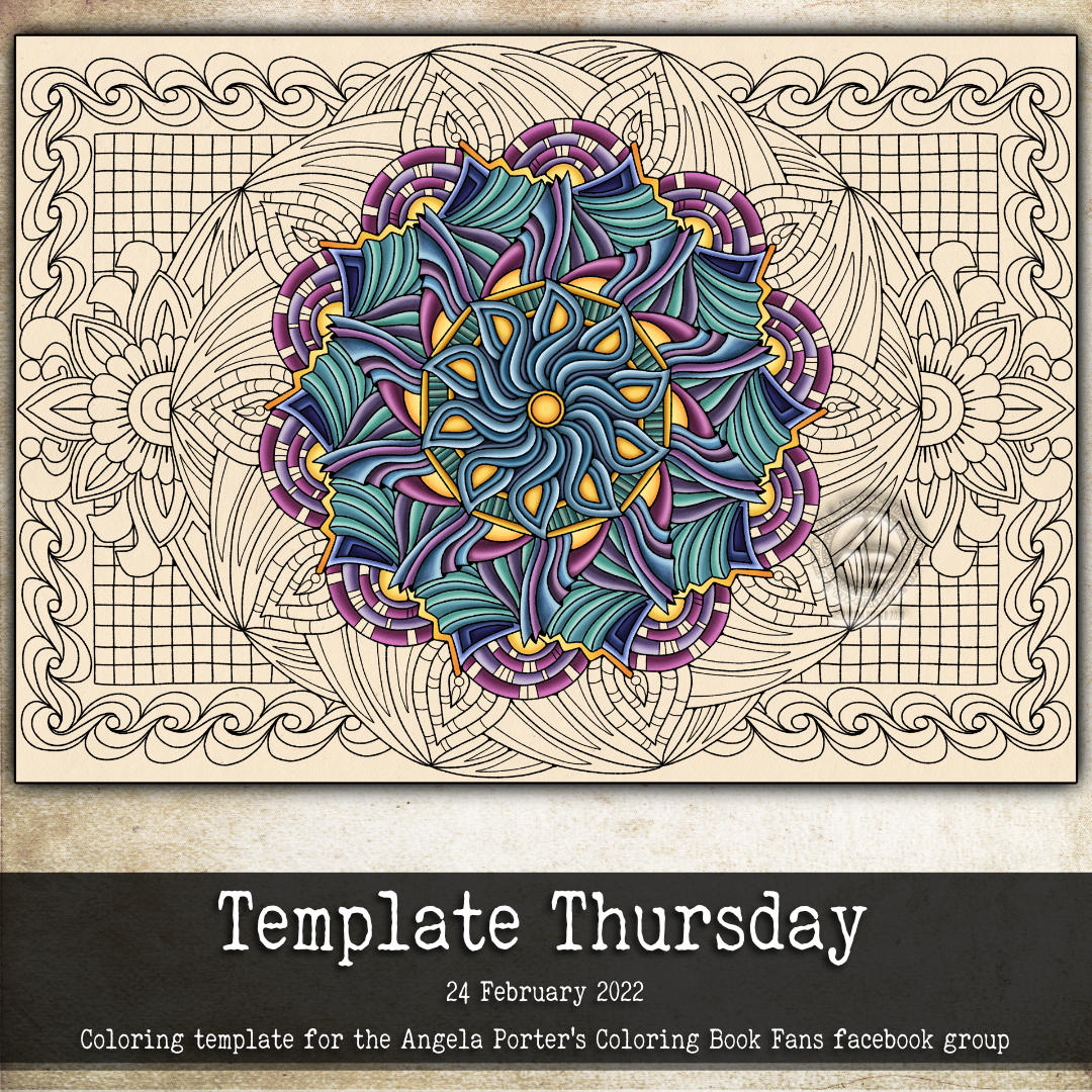 Thursday is the day I gift a colouring template to the members of Angela Porter’s Coloring Book Fans Facebook group. I know that not everyone uses Facebook, so I am working up the oompf to sort out a mailing list, so please bear with me while I do that.