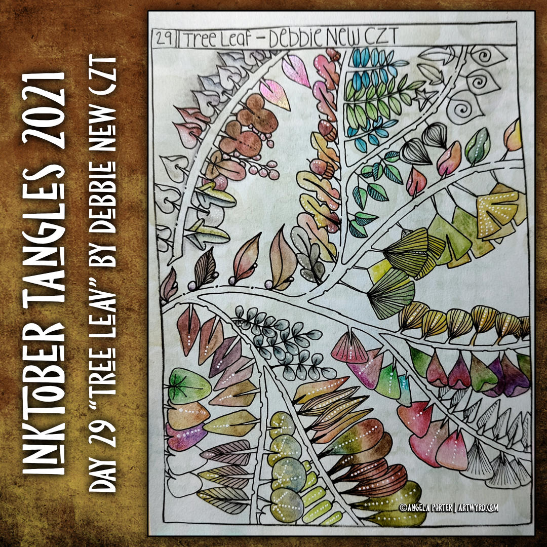 Inktober Tangles 2021 | Day 29 “Tree Leaf” by Debbie New CZT