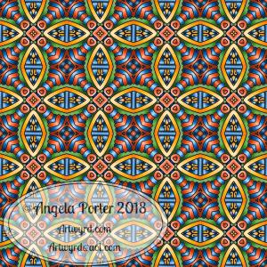 What I did was to take one of my coloured mandala patterns and use that to create a pattern that was pleasing to me.  Actually, I had many, many patterns that were pleasing to me, and I saved them as tiles that would form a repeating pattern.  With some, I saved them as a surface pattern, where the tiles were already repeated.