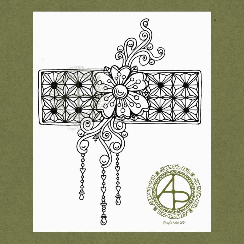 Dangle designs are, of course, very versatile. I put these on the edge of a postcard sized piece of paper. However, they could be used as the focal point of a greeting card or note card. Lengthen the dangle, and they’d make cute bookmarks. They’d make interesting designs to fill spaces in a BuJo or scrapbook page. They’d also make interesting focal points on art journal pages.