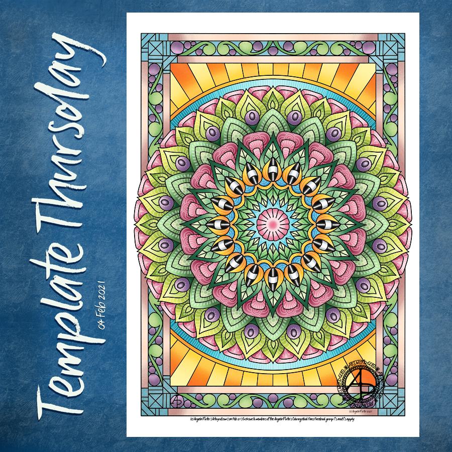 I’ve had a busy day so far. First, I got a few sketches done for the next colouring book for Creative Haven. Then, after showering etc, I went out to do a little food shopping. The sun was way too bright for me and my sensitive skin, even with sunblock on! Next, after a mug of tea and some lunch, I turned my mind to creating a mandala and adding some colour.