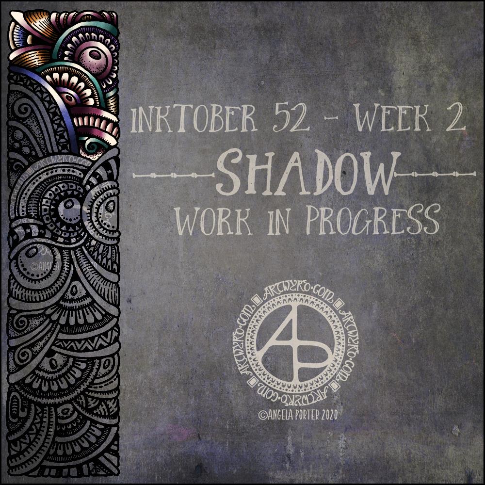 I like this week’s prompt for #Inktober52 – Shadow. I like to work with quite high contrast colours/shades to give the illusion of dimension. So, I thought I’d take one of my borders, add it to a very shadowy background, add colour, light and shadow, and finally I’ll put a quote about shadow on to it. My only problem with adding a quote is which one to choose! There are so many fine quotes about shadow and light.