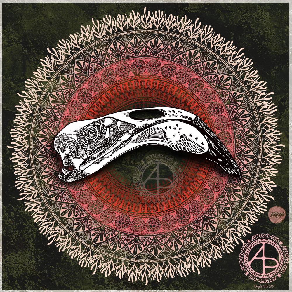 I wanted the skull to stand out, so I coloured the mandala in a softer, paler version of the background colour.