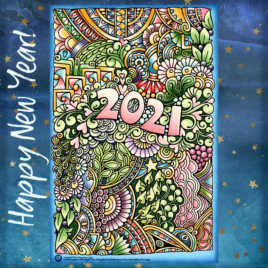 We’re rapidly approaching the end of 2020 and it’s my custom to create a coloring template for the Angela Porter’s Coloring Book Fans facebook group to mark the calendar changeover day.