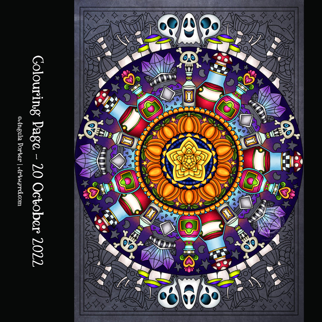 October is nearly at a close. So, this week’s colouring template for Angela Porter’s Coloring Book Fans Facebook group is my last Halloween-themed one for this year.