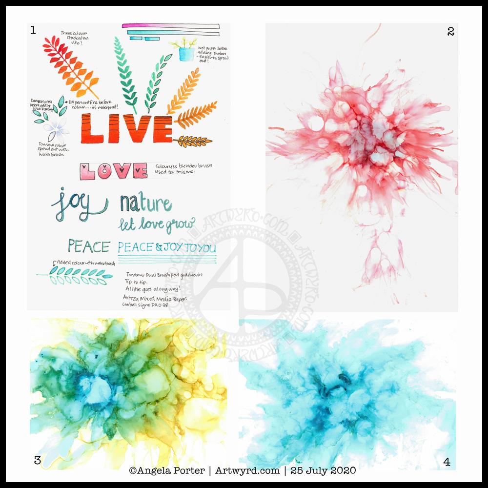 So, all of these activities – using waterbased media, hand lettering, hand drawn typography, and alcohol ink backgrounds all have one thing in common – practice, practice, practice!