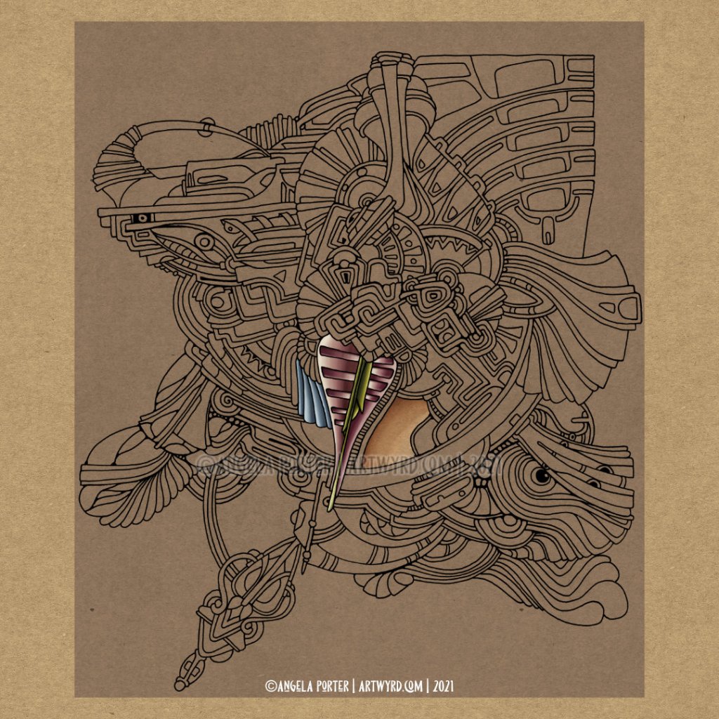 An abstract drawing that I started yesterday. I think the drawing is complete, maybe. But I wanted to start to add colour to work out what palette I want to use.