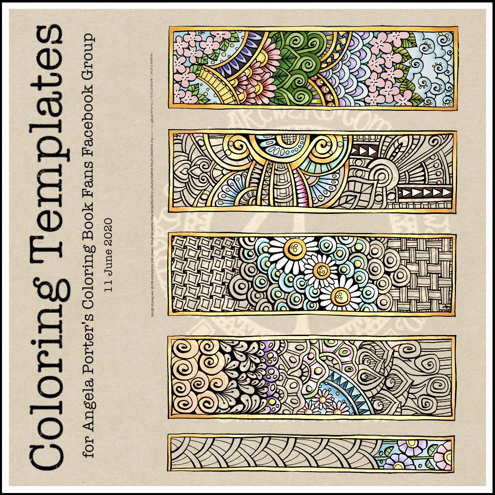 This week’s coloring template is a series of bookmarks. A member of the Angela Porter’s Coloring Book Fans facebook group said they’d like some designs that could be used as bookmarks, and so I went with the suggestion.