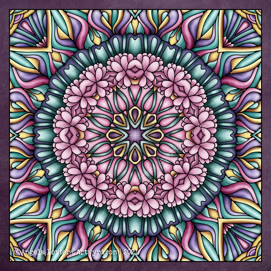 One thing I really do need to look into are the settings on the symmetry tools. They didn’t work the way I expected them to, hence the rather unusual way the patterns are repeated around the centre. The fact that they work this way means that there’s a wider range of possibilities for such designs going forward. That is exciting!