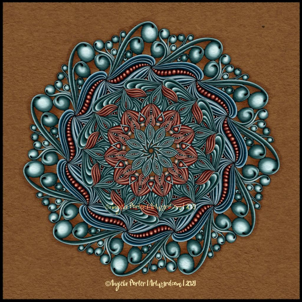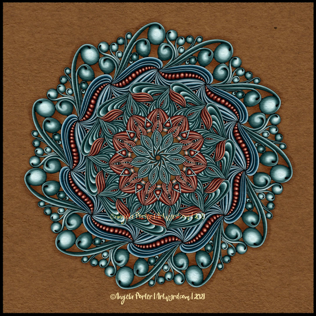 In hindsight, the choice of that coppery brown may not have been the best one I’ve made. However, this mandala really has been a fab learning experience for me – not just of the software I’m using, but of how I work artistically. I’m finally beginning to think a bit more about what I’m doing. I’m still working very intuitively, but I’m recognising the unconscious thoughts that steer me as I work.