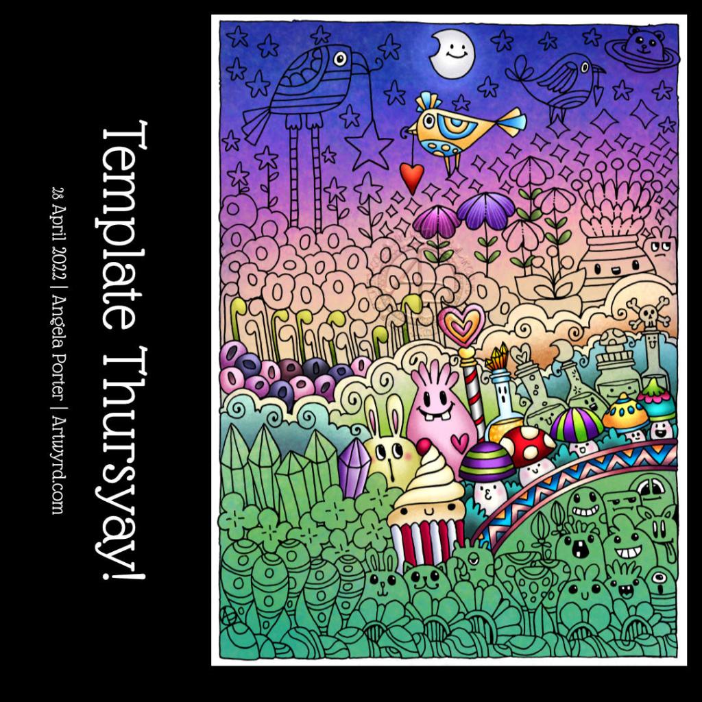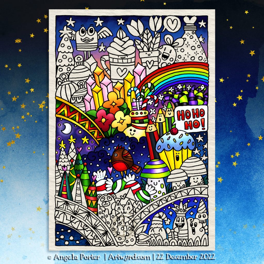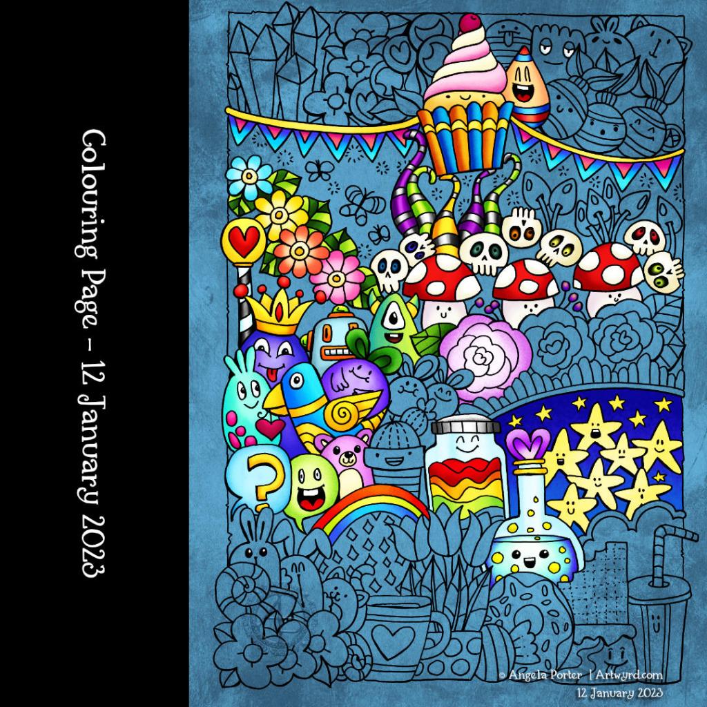 This is my first colouring page of the year for Angela Porter’s Colouring Book Fans Facebook group. Last week, I was busy getting all the templates for Whimsical Houses done. I got them all done, but some changes have been requested for a couple. So before starting to do them, I thought I’d just take some time to create some art for fun.