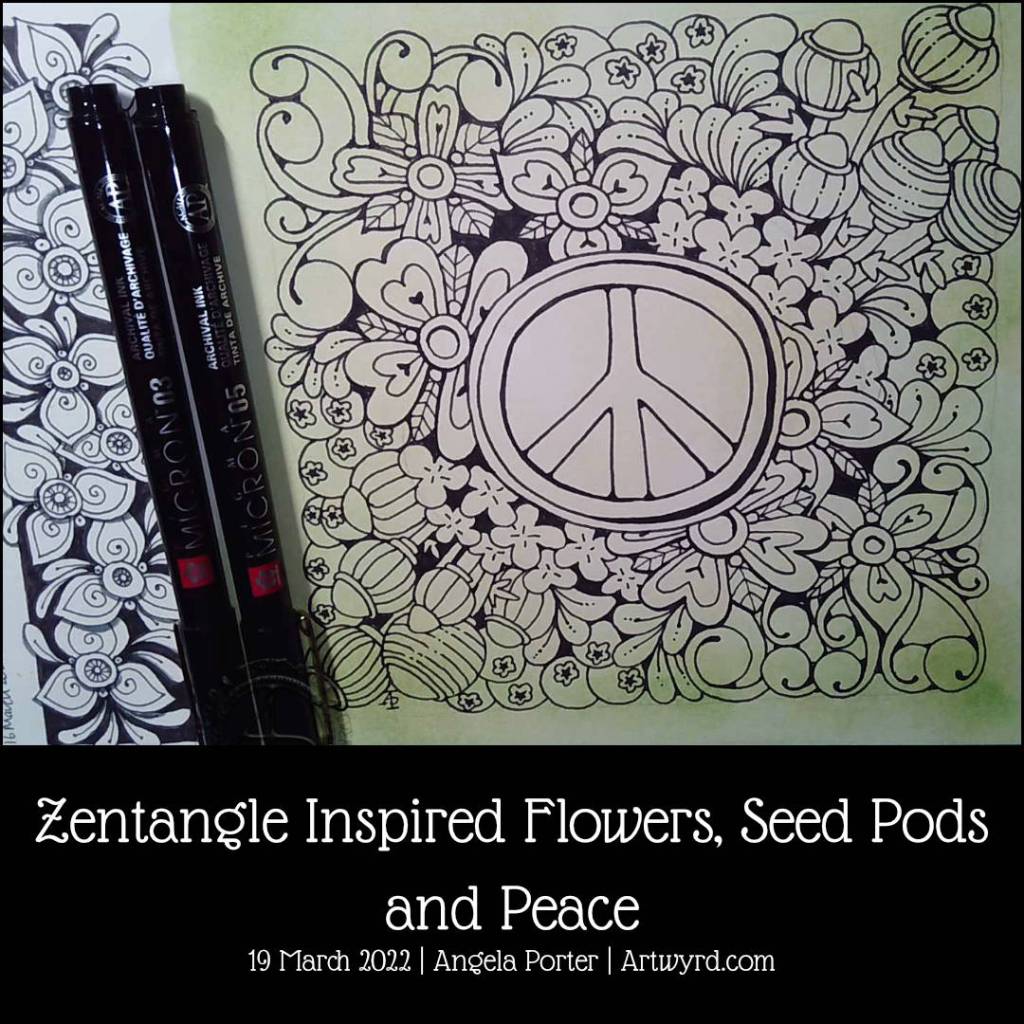 I thought of lettering the word ‘peace’ but decided on using the peace symbol as the focal point instead. Being born in the early 1960s, I do remember hippies, flower power and the peace movement, so popping plenty of flowers and foliage around the symbol seemed the right thing to do.