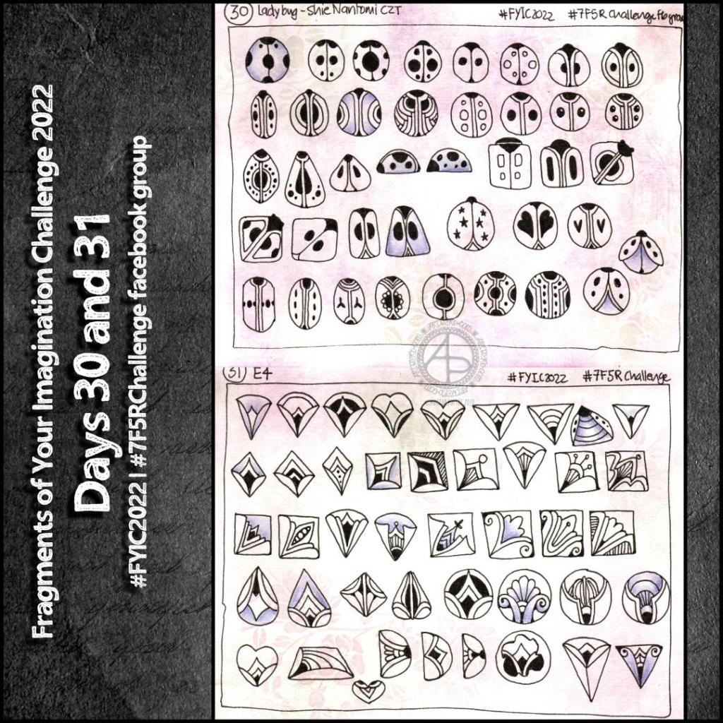Day 30 is Ladybug by Shie Naritomi CZT. At first, I didn’t know what to think of the fragment or what I could do with it. However, as I started to draw it, a variation appeared. Then another. And another. I was truly surprised by all the fragments that appeared!