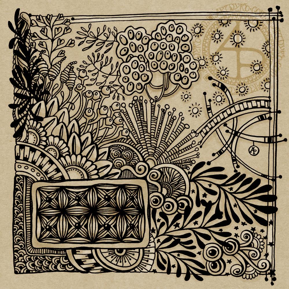 I decided I’d use the frog skull as a framework for some tangle patterns. It’s not so easy to pick the skull out, but it is there in the centre of today’s illustration.