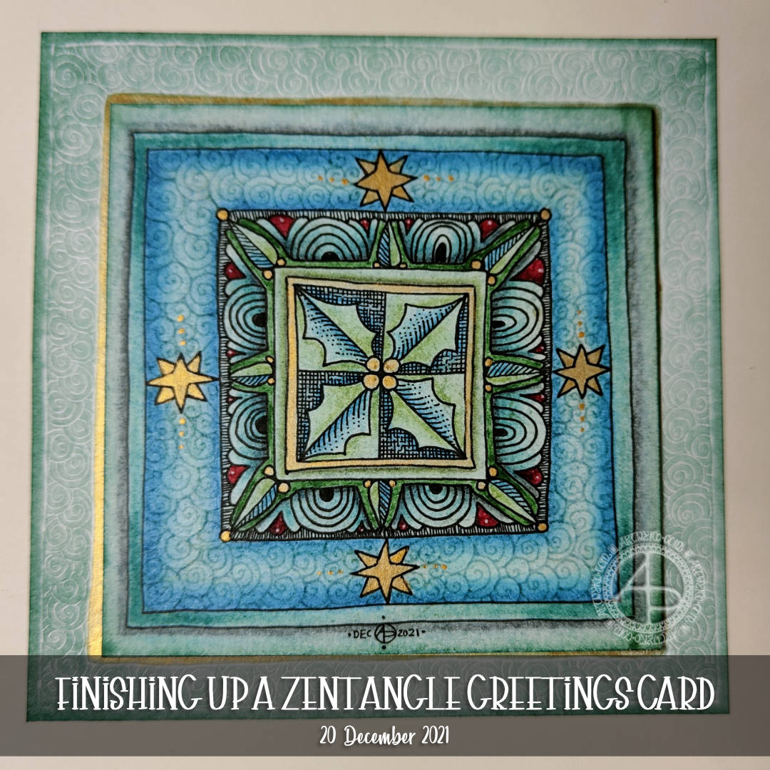 I do wish I hadn’t added the gold dots around the frame though; I thought I needed some to complement the gold dots that I added to the entangled design.