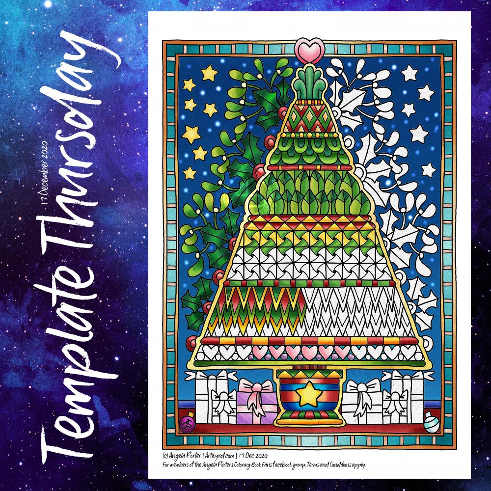 This week, the design has one big focal point motif of a zentangle-inspired Christmas Tree. It’s cute and whimsical, and is surrounded by holly, mistletoe, gifts, stars and baubles. Of course there’s some hearts there too.