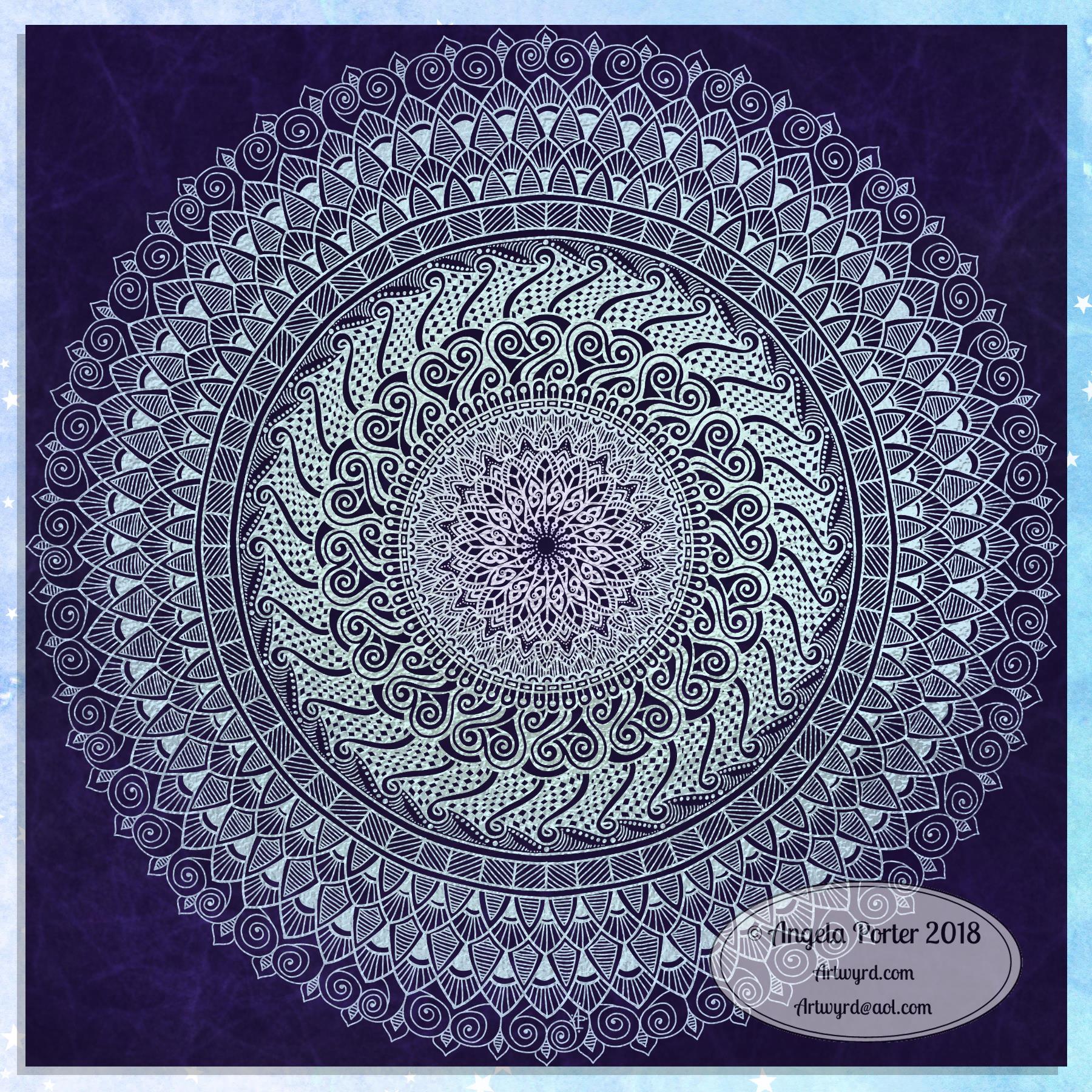 To draw the patterns I used a Sheaffer fountain pen along with 06 and 04 Pigma Sensei pens from Sakura. The 06 led to me using some heavy lines to define the patterns and sections, something I’ve not often done for a very, very long time and I find it pleasing. Again, clear boundaries. I also like when art like this is coloured; it looks like stained glass and I love stained glass.