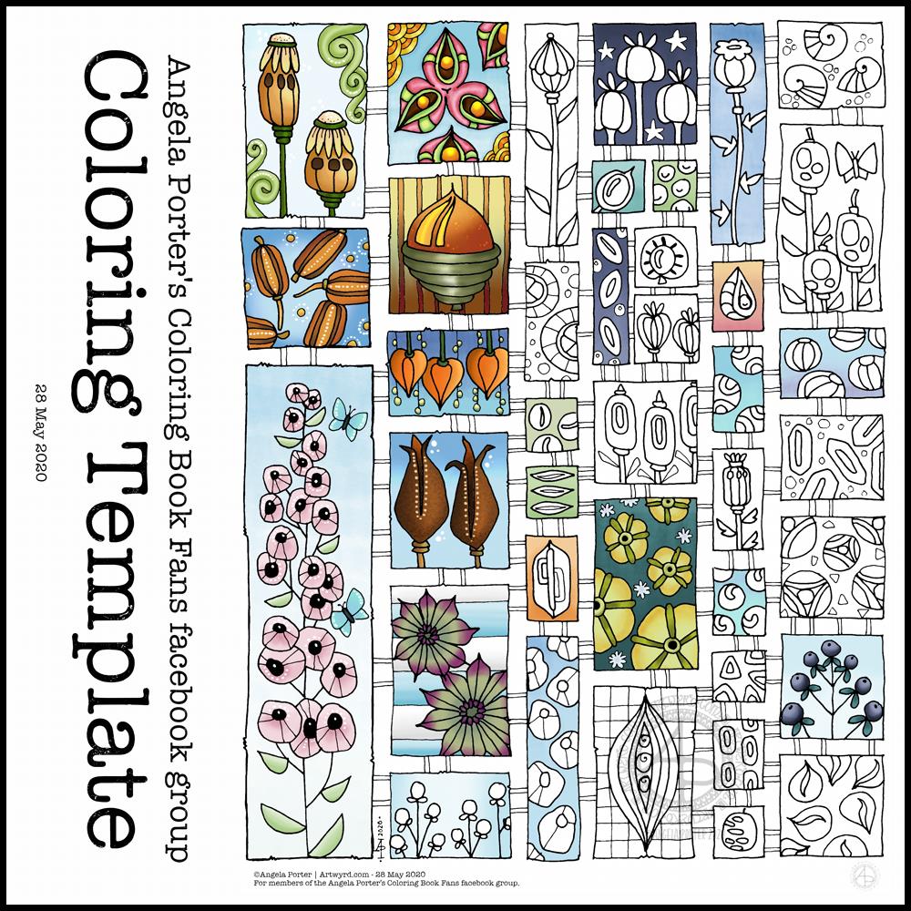 The weeks are flying by! It seems like hardly any time at all since I posted last week’s coloring template. I decided at the start of the Covid-19 quarrantine that I’d design a weekly coloring template for the members of the Angela Porter’s Coloring Book Fans facebook group. And so far I’ve managed to do that.