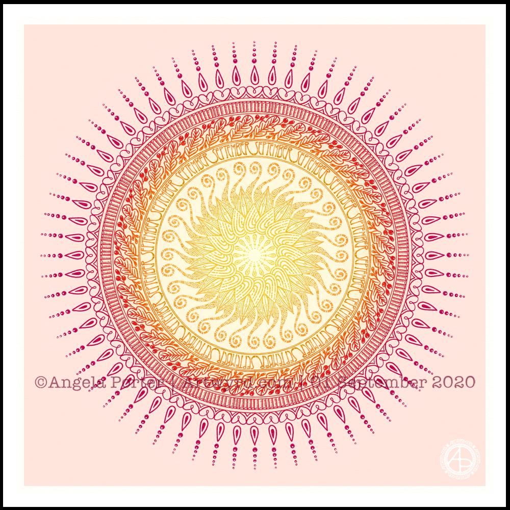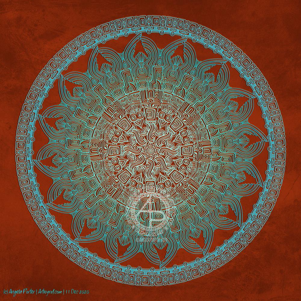 This morning was a morning that I needed to do some art that was familiar, calming, soothing and intricate enough that I could lose myself in it. A mandala always fits that bill. Always. It doesn’t matter if it’s drawn with pen and ink on paper or digitally. The mindful, calming effect is the same. It’s the process that matters, the repetitive shapes and patterns that are drawn that contribute greatly to the soothing effect.