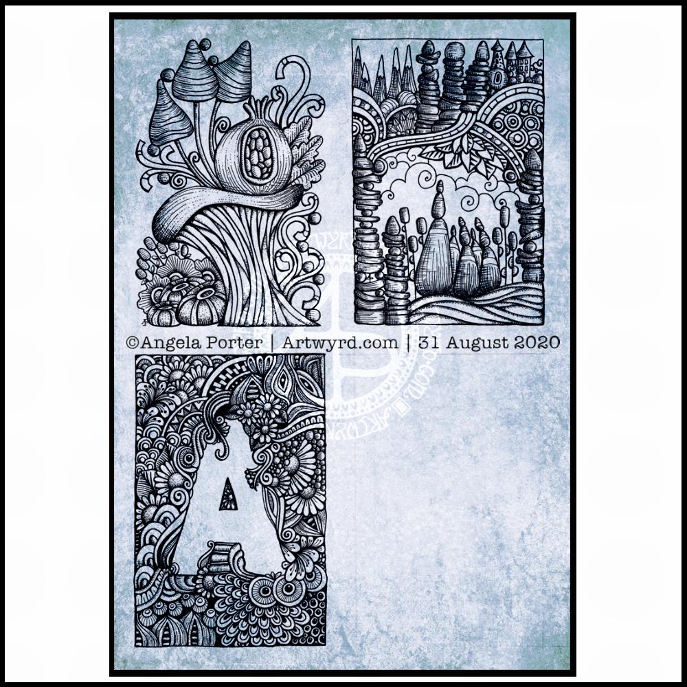 I finished the top right design, and have completed the ‘A’ illustration on the bottom left. That leaves one space to be filled, no doubt later today.
