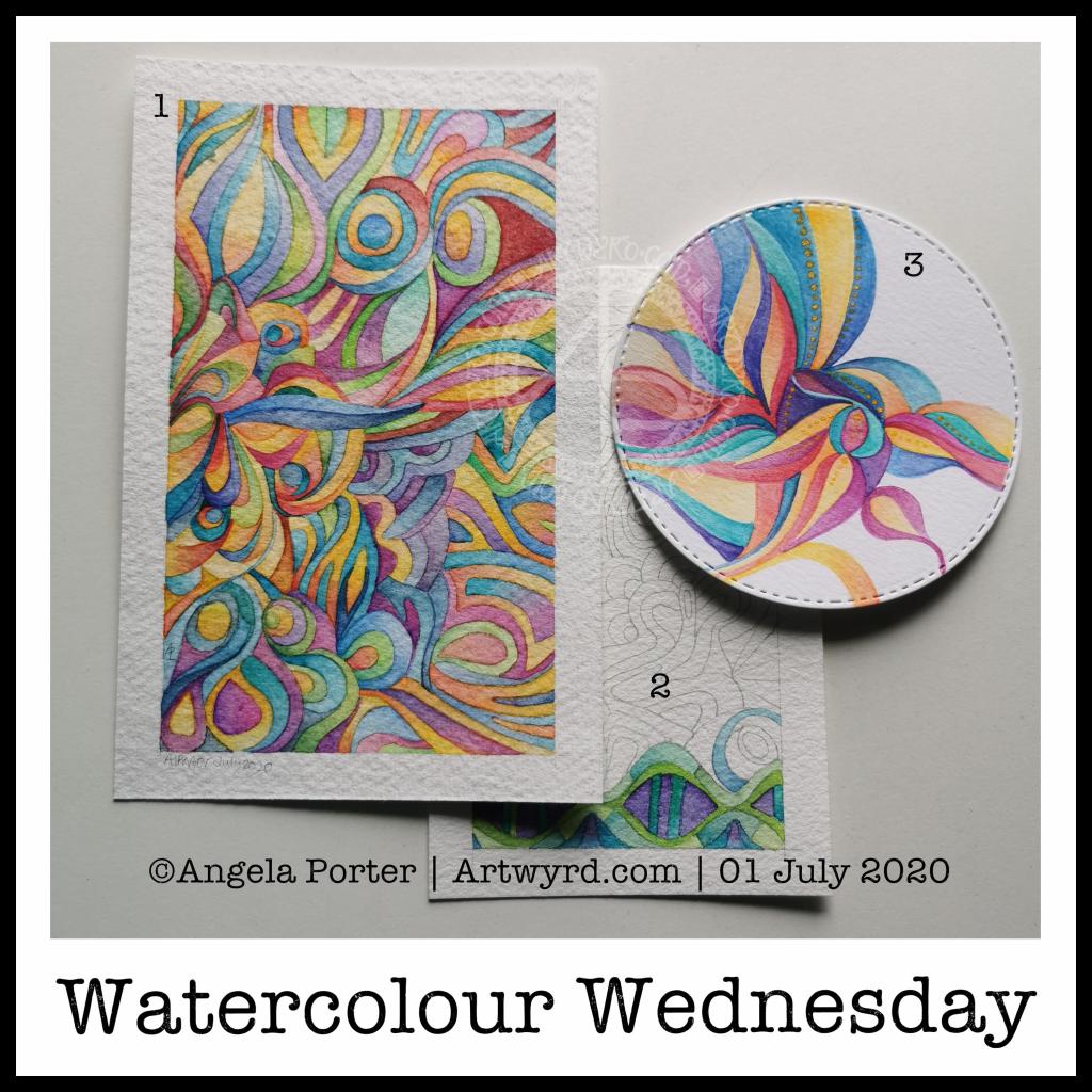 I dropped wet into wet, both watercolours and metallic watercolours, and just let the watercolour do their thing. I also tried similar with Inktense ‘watercolours’ too.