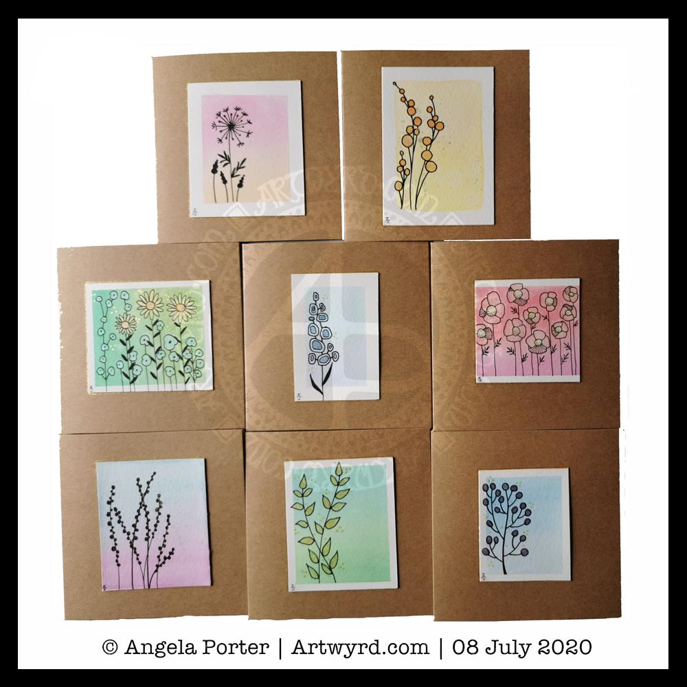 Once the panels were all done, itseemed a good idea to mount the little panels on some 4″ x 4″ blank cards. So I did just that and added a few more cards to my stash.