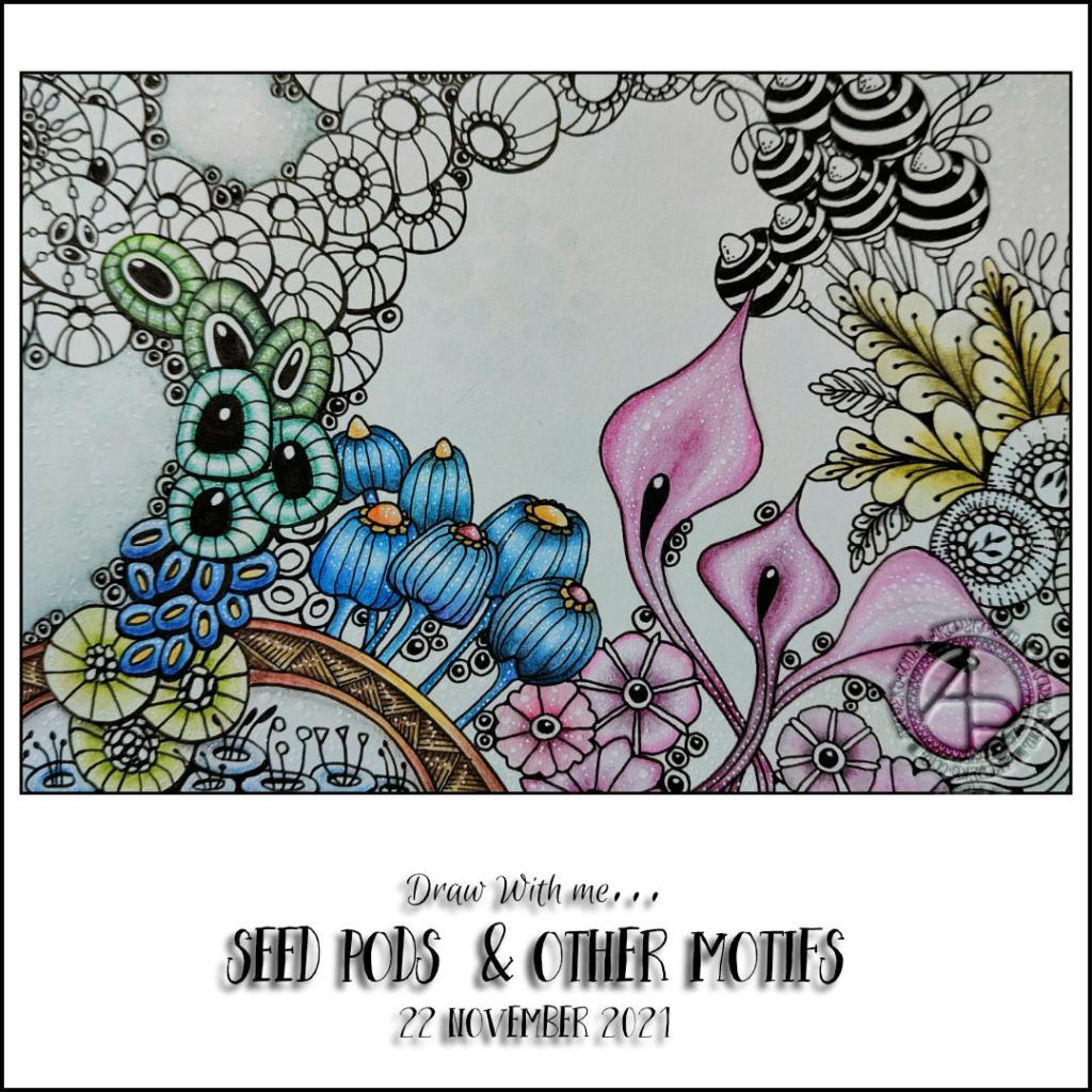 It’s Day 13 of Sketchtember, and another seed pod style drawing, with lots of variations today. But there’s also a Zentangle style drawing using one of these seed pod variants.