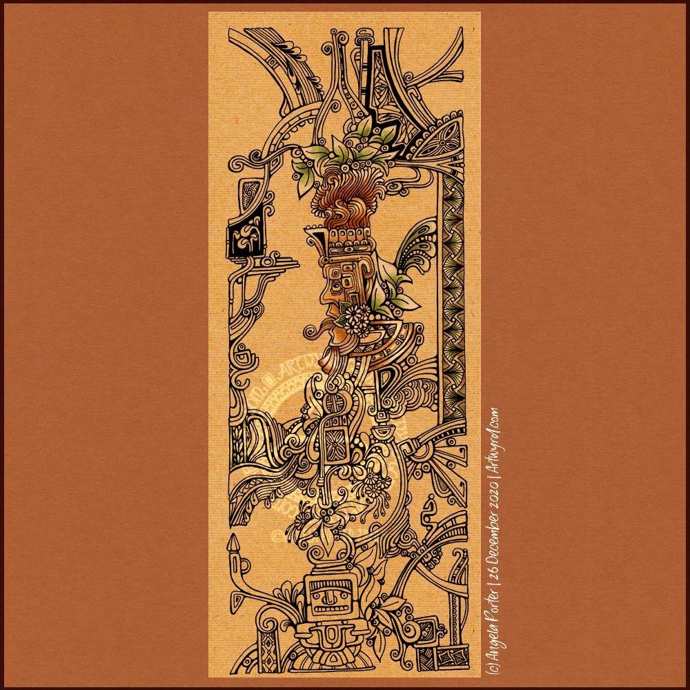 This design was what appeared. In pencil on off-white mixed media paper. It reminds me of the designs on the Nazca Plains of Peru, but also some hints of Hundertwasser trees. Maybe even prehistoric rock art.