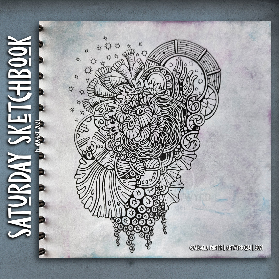 Working from my creative subconscious is something I do…a lot. All my entangled art that just flows onto the page. Mandalas. Using observations of pattern and texture to create something that is non-representational, just, to my mind, pretty, pleasing.