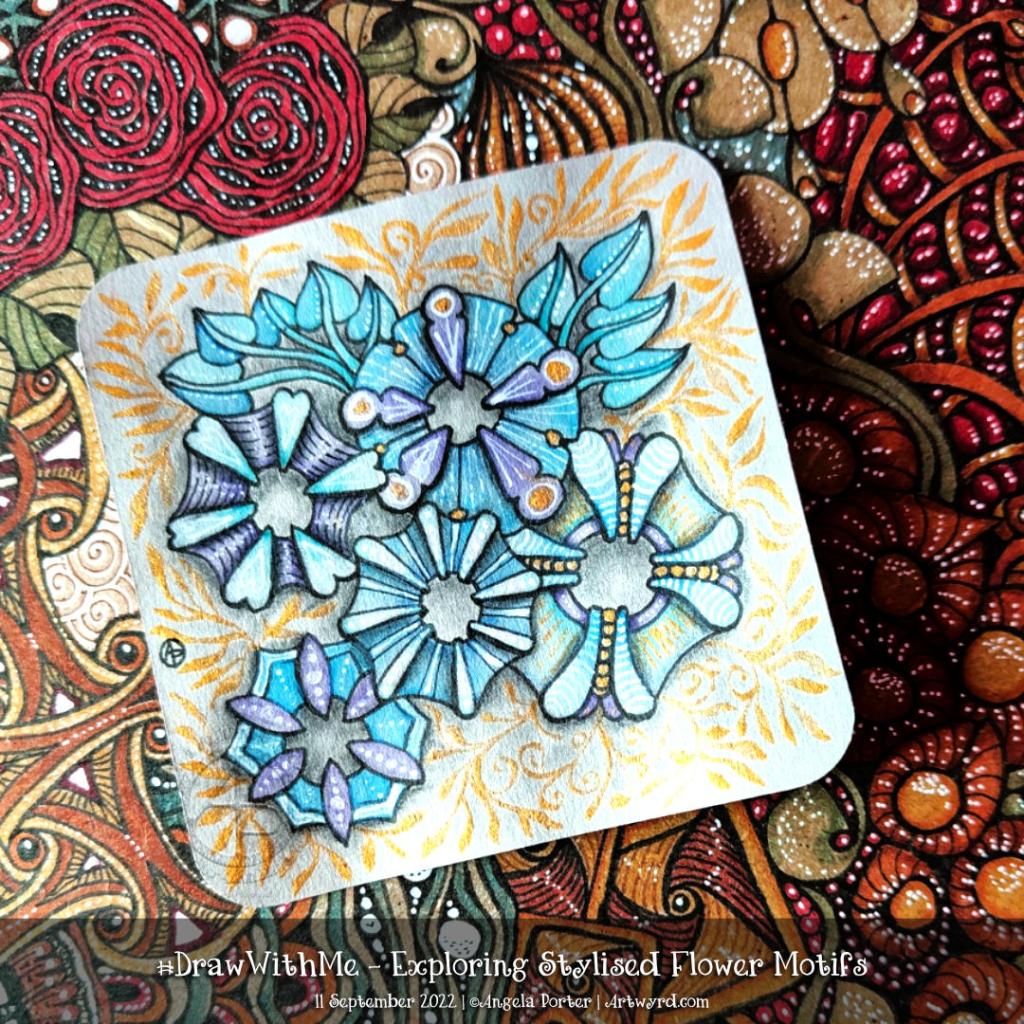 This morning I wanted to do something fairly simple, soothing and relaxing. So, I chose to look at some variations of a stylised flower motif.