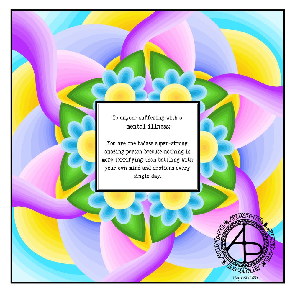 Usually on a Friday I’d post a dangle design. Today, I wanted to post a quote about mental health, and I decided to have a play with a similar very graphic style of art to place behind it. I’m not entirely sure the art works. No doubt I’ll have a go at another version later on today, perhaps.
