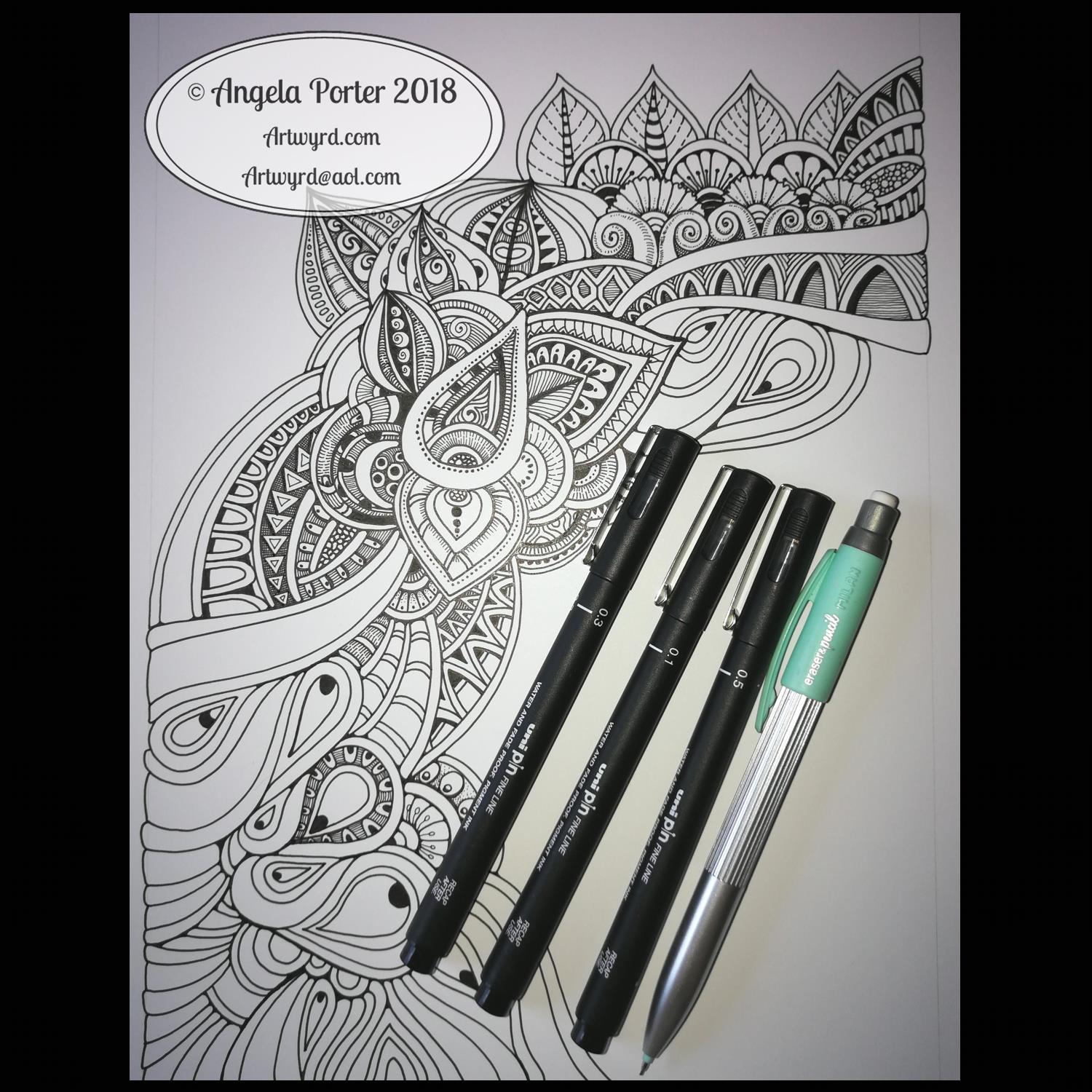 I tried digital art and I just couldn’t settle to it, so I thought a spot of traditional pen and paper drawing in an entangled or zentangle style might just fit the bill.